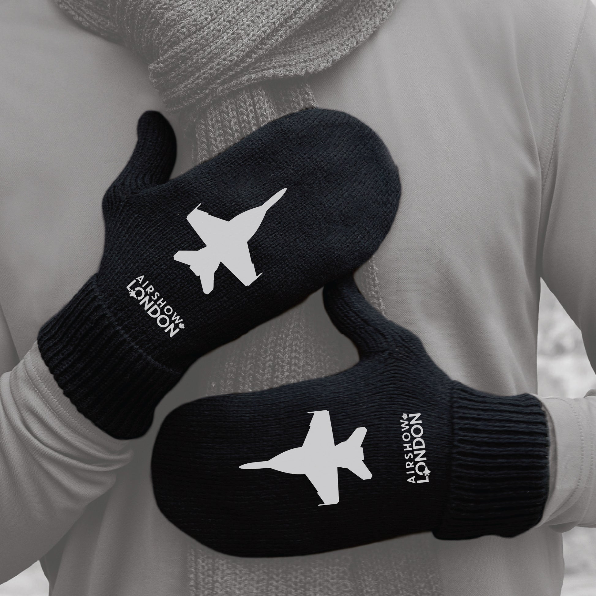 Designed with the F‑18 Hornet silhouette and Airshow London logo, these knit mittens offer a straightforward fit and cold-weather comfort all season long.