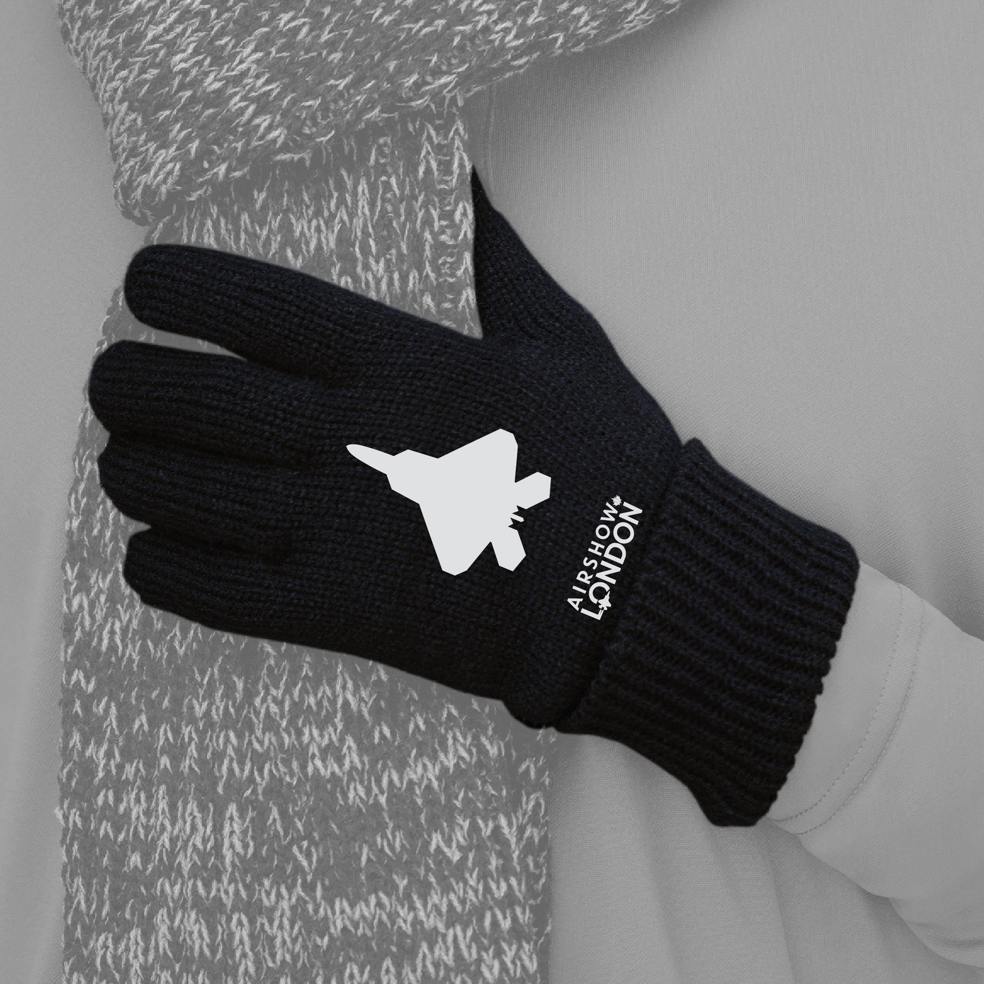 These fitted knit gloves feature the F‑22 Raptor graphic on the hand and Airshow London branding at the cuff. Lightweight and flexible with a comfortable feel for everyday wear.